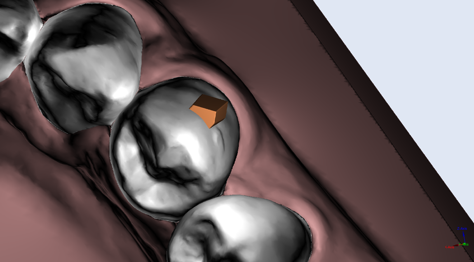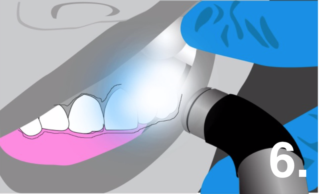 Attachment templates are thermoformed from a special plastic that composite resins will not adhere to. The composite is placed into the template then fitted over the cleaned and prepared tooth. When the composite is cured the tray easily peels away leaving the attachment on the tooth.